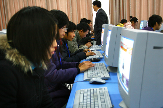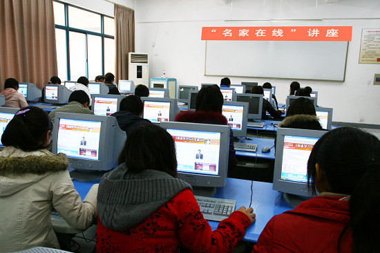 我校组织09普专动漫设计等班级的师生在传媒艺术系机房内通过“远程素质教育网”的网络文字直播系统全程参与了在线活动。师生们以实名登陆,参与现场互动交流。学工处将现场会议照片发送到省校,省校在实事直播系统中播发了我校师生参与活动的照片。