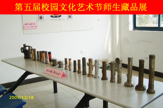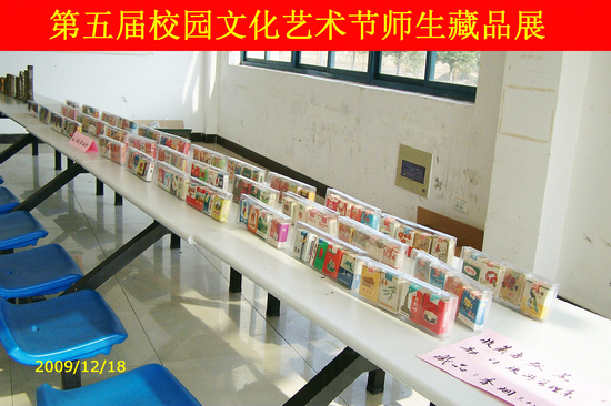 旅游系张涵老师展出了136盒原包装老香烟和25只古手电筒及近万张各类门票收藏,让参观的师生大开眼界,获藏品展第一名。教学管理处倪文元老师的各式邮票、经贸管理系何焘老师的连环画、旅游系陆耀文老师的字画挂轴藏品等也别有风味。参加展出的还有传媒系07高职多媒体班杨绪龙同学的动漫模型和传媒系09多媒体班宗友成同学的古铜镜、古钱币。