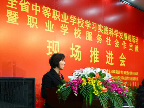 1月8,江苏省中等职业学校学习实践科学发展观活动暨职业学校服务社会作贡献现场推进会在我校召开。省中等职业学校和中小学深入学习实践科学发展观活动指导小组组长、省教育厅厅长、省委教育工委书记沈健作重要讲话,常熟市委副书记秦卫星致欢迎辞,省中等职业学校和中小学深入学习实践科学发展观活动指导小组副组长、省委教育工委副书记丛懋林主持会议,省中等职业学校和中小学深入学习实践科学发展观活动指导小组副组长、省教育厅副厅长殷翔文,苏州市委学习实践科学发展观领导小组办公室副主任、苏州市委组织部副部长兼老干部局局长金洁出席会议。