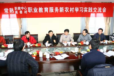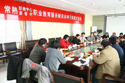 交流会上,校长金玉书对常书记不顾高龄和劳累,亲自为校村之间学习实践交流精心安排、热情款待表示衷心感谢,对蒋巷精神和科学发展历程表示由衷赞叹,并就常熟职业教育发展格局、培养目标、服务宗旨以及常熟职教中心由大到强、服务地方经济社会、服务人的全面发展等情况作了介绍。金校长在分析、规划和部署新一年学校发展思路后强调,目前,学校正处在极好的发展机遇期,全体党员干部务必牢记党的宗旨、牢记职教历史使命,要以蒋巷精神激励自己,努力从领导层面、中层层面、教师层面以及服务社会发展层面,落实整改内容,追求“四个对接”,实现“四个服务”;要围绕建设国家级高水平示范性职业学校目标,努力从建设上、改革上、发展上,把握“高质量、高水平、创新型、示范性”建设主题,寻找职业教育服务社会主义新农村的结合点、支撑点、突破点,提高学校持续发展的竞争力、吸引力和贡献率,开创新一轮高位发展、科学发展的新局面。