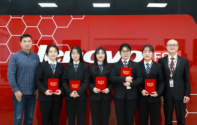 本次结业典礼共分为六个部分,分别是项目回顾与总结、优秀表彰、联想领导寄语、颁发证书与结业纪念品、校方领导寄语和联想班文化展示。首先联想项目驻场总监严其昊老师进行项目回顾与总结,五个月来联想班全体学员的学习与生活,点点滴滴。在优秀表彰环节,班主任鱼雁老师、联想陶源老师、严其昊老师分别为学员们颁发了优秀学员奖、优秀班级管理者奖和最佳学员奖。传媒艺术系王湖主任为全体联想学员颁发结业证书。联想严其昊老师还为全体联想班学员分发了结业纪念品,这些纪念品承载着职教中心所有领导、老师和联想的领导老师们满满的期望与祝福。在热烈的掌声中,联想教育总监周鹏先生、江苏省常熟职业教育中心校张恒副校长分别上台致辞,他们都对联想班学员提出要求并且寄予厚,希望学员们把在这五个月中学到的职业素养、专业知识和企业文化带到今后的工作与生活中。最后,全体联想班学员进行了联想班文化展示,坚定地宣读联想五P文化、唱响联想之歌。