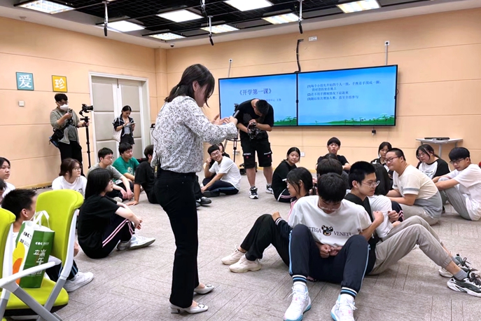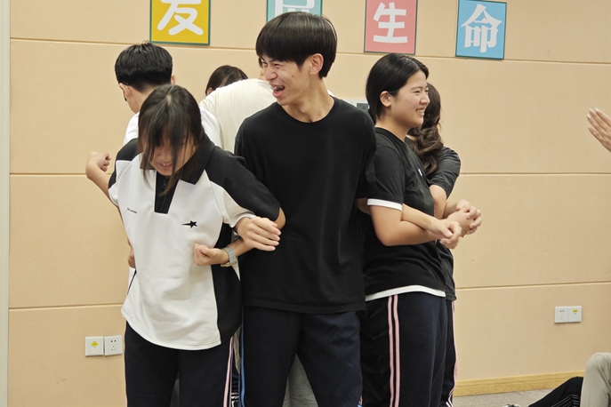 在节目开始之前,第五秀芳老师和王燕老师带着同学们一起做了热身团辅活动《茉莉花开》、《坐地起身》。活动结束后,王燕老师介绍了活动的目的,并强调活动输赢不重要,真正重要的是让学生在活动中有所体验和领悟,从而获得成长的契机。3位同学分享了自己的感受,他们说在热身活动中通过和周围同学的互动,发现相互配合的重要性,体会到互相信任、团队的力量是让自己获得成功的关键。