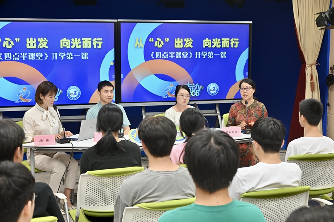 经历了假期,重新步入校园,面对新环境,新阶段,不管是新生还是老生,都会遇到一个词语,叫做“适应”,开学季也是考验大家适应能力的时候,有人适应得快一些,有人进入状态慢一点。三位嘉宾开启了一波“回忆杀”,分享了自己当年上学时候面对开学的状态,他们开学初也会有忐忑。人们把开学时容易出现的种种不适应的状态叫做“开学综合征”,长期耕耘在教育条线的刘佳颖老师发现刚开学的学生精神状态不是很好,原因在于一是学生作息还没有调整过来,一是不少学生依赖电子产品。第五秀芳老师也发现开学初到医务室和心理健康咨询室的学生明显增多,他们会向校医老师倾诉头晕、晚上睡不着、注意力不集中等由心理状态导致的躯体不适。针对这种“症状”,尤晨院长从心理层面给同学们作了专业解析,新阶段新环境可能出现的一些不适应,其实是“人之常情”,只要同学们做出一些调整和改变,就能够顺利度过适应期,甚至可以带来整个学期更好的成长和收获。