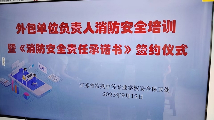 会上,学校安全保卫处处长朱平文充分肯定了各外包单位在以往工作中为平安校园的建设作出的贡献,分析了新学期学校高质量发展中安全工作面临的新情况,新问题,并提出了新学期安全保卫处工作思路:以师生安全为宗旨,以学校发展安全为基础,认真履职,忠于职守,强化担当,狠抓落实。最后,朱处长对全体与会人员进行消防安全知识培训,并与各单位签订《消防安全责任承诺书》。通过签订责任书,进一步强化了各单位的安全意识,从而采取有效措施,为学校高质量发展赋安全力量。