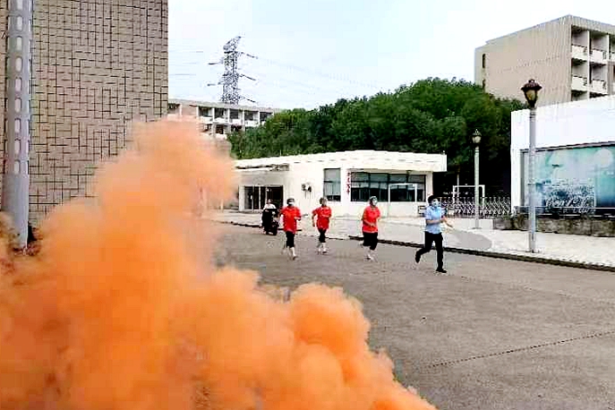 下午2点整,副校长杨志良宣布演练开始。紧接着,生活区烟雾弹点燃,火警警报响起。区内全体员工快速有序地疏散到指定地点。疏散结束后紧张激烈的灭火演练随即开展,只见一位位员工手执灭火器,快速上前准确、迅速地将火熄灭。