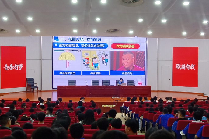 讲座中,朱丽佳检察官从校园美好、珍惜情谊、毒品陷阱、明辨严拒、理性上网、循规守矩、自护有方、临危不惧、父母不易、珍惜缘分等五方面,结合发生在学校周边、学生身边的鲜活案例,通过以案释法,详细解读青少年如何预防犯罪、提升自我保护能力等问题,为同学们上了一堂具有针对性的法治教育课。