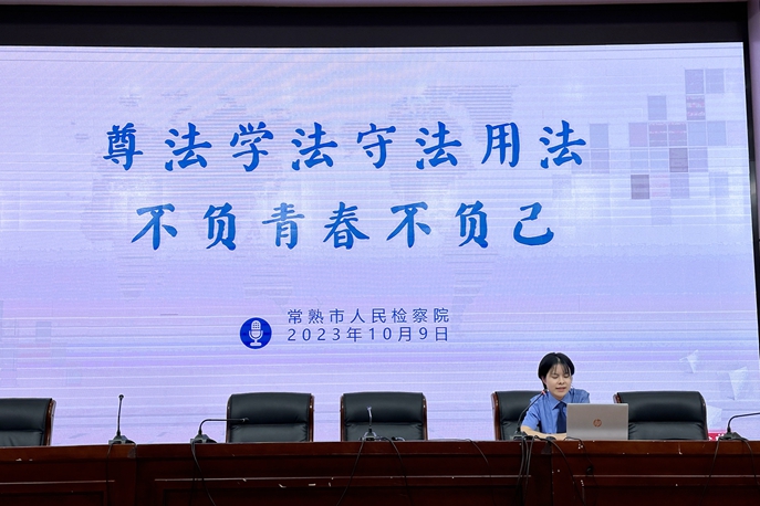 为营造良好的法治校园氛围,增强学校法治教育建设,树立学生知法、懂法、守法的意识,积极构建平安和谐校园, 10月9日下午,常熟市检察院检察官朱丽佳为我校600多位学生上了一堂主题为《尊法学法守法用法,不负青春不负己》的法治教育专题讲座。