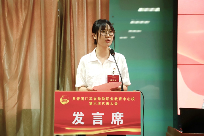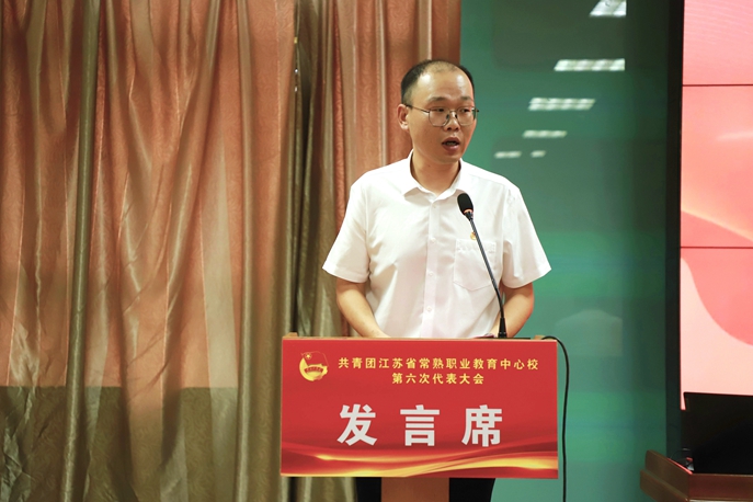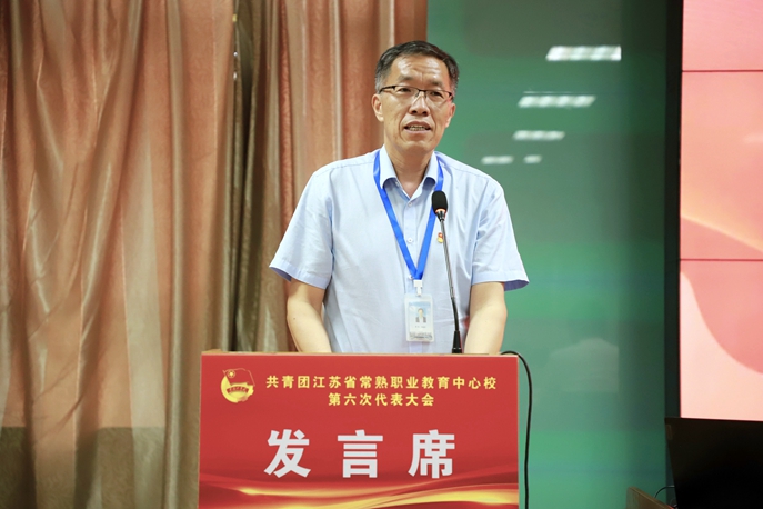 常熟高新园中专团委书记顾晔代表兄弟学校团委领导向大会的胜利召开表示热烈的祝贺。