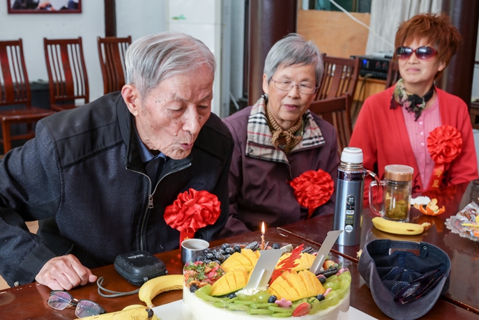 随后,陈长庚、朱成煜、樊祖平等寿星代表进行了交流发言,分享退休生活体会。老寿星们感谢学校给予的暖心关怀和精心安排,祝愿学校蒸蒸日上,越办越好,并表示老同志们会保持身心健康,乐享退休生活,继续发挥余热,老有所为。庆生仪式上,寿星们胸佩大红花、神采奕奕,全场齐唱《生日快乐》歌,两位90岁寿星吹蜡烛许心愿。