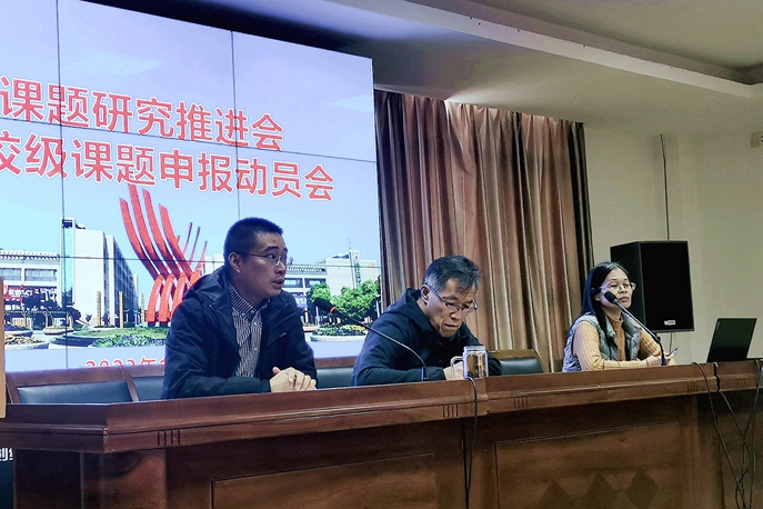 首先,殷振环副校长作校级课题申报动员。他分析了当前我校教科研工作的形势,要求各位老师高度重视本次课题申报,鼓励申报人根据自己的教学科研工作实际情况,自拟有价值、能促进学校发展的研究课题进行申报,以此来提升自己的科研水平。