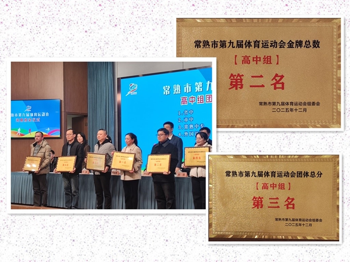 12月25日下午,常熟市第九届体育运动会闭幕式在常熟会议中心举行。我校在本届赛事中表现优异,获高中组团体总分第三名、金牌榜第二名。学校党委副书记王春代表学校出席闭幕式并领取奖牌。