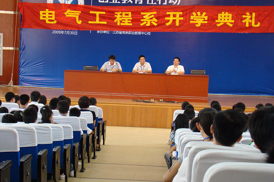典礼由学生科长顾俊主持,范建平副主任首先就电气工程系现状及教学情况作了简单介绍,并希望学生在校期间认真学习知识技能,成为一名合格的毕业生。其后,顾俊科长就学生常规管理方面提出了几点要求,告诫学生先成人再成才,严于律己,遵纪守法,注重培养高尚的道德品质,从而不断完善自我。最后,张传生主任在阐释了我系办学理念的同时,向全体新生提出了殷切的希望:一要强化职业道德,共创和谐校园;二要勤奋好学,掌握技能;三要加强“7S”管理,争做“7S”标准化管理系部;四要积极参与各项活动,培养“三创”精神。