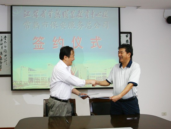 常熟市保安服务总公司几位领导感谢学校为驻校保安队创设了很好的环境,同时希望今后校企双方进行深层次合作。金玉书校长代表学校首先对驻校保安队多年来为学校安全保障、积极配合学校中心工作所作的贡献表示感谢,其次对驻校保安队今后工作提出了四点希望:一是要高度重视学校的安全工作,二是要切实采取安全的预防措施,三是要妥善处理一些突发性事项,四是要树立保安队员的良好形象。