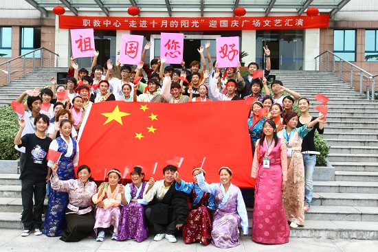 整个汇演活动以赞美祖国、歌颂中华贯穿始终,历时近1个小时。精彩纷呈的节目吸引了数百名师生驻足观看。由校舞蹈社编排的动感十足的街舞《popping》首先拉开了文艺汇演的序幕。随后,来自各系部、学生社团精心排演的节目一一登台亮相。配乐诗朗诵《我是中国人》,声情并茂,铿锵有力,表达出我们作为中国人的自豪感以及对祖国母亲的诚挚祝福;葫芦丝独奏《竹林深处》展现了中华民族文化的独特魅力,那时而悠扬、时而欢快、时而婉转、时而慷慨的旋律深深地打动了现场观众;旅游系西藏班同学表演的极具民族特色的藏族锅庄舞,热情奔放,跳出了他们对祖国母亲的浓浓深情。最后大家还跟着藏族同学一起跳起了欢快的“锅庄舞”,把现场气氛推向了高潮。