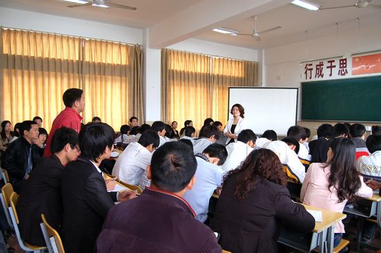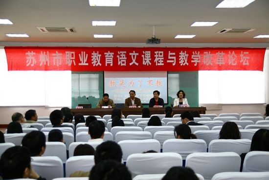 上午,共有9位来自苏州大市的骨干语文教师开设了公开课,他们围绕“教是为了不教”的主题,选取散文、诗词、小说等体裁的文本进行了职教语文课改理念的有益尝试。下午,苏州职教语文课程与教学改革论坛在分组评议观摩课后紧锣密鼓地举行。苏州市教科院副院长任苏民、省中职协会副秘书长王东生就语文综合学习、语文课程教学改革等专题作了论坛讲座。