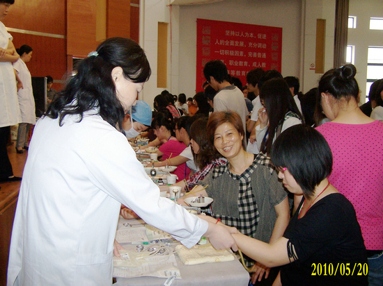 采血台前,教师们率先挽臂献血,学生们紧跟着挽起了衣袖。第一次献血,不少学生尤其是一些女生感觉特别紧张,但在周边人的影响和鼓励下,最终克服了惧怕心理,勇敢地伸出了手臂。一位献血同学说:“最近在新闻媒体和献血网上看到了血源告急的信息,这牵动了我们每个人的心。我们都很想出一份力,为社会做些力所能及的贡献,帮助那些有需要的人。”在献血的教师中,不少人已经多次献血,有的还是苏州市无偿献血金奖、铜奖的获得者,他们用无声的行动感染和教育学生,成了学生最好的表率与楷模。