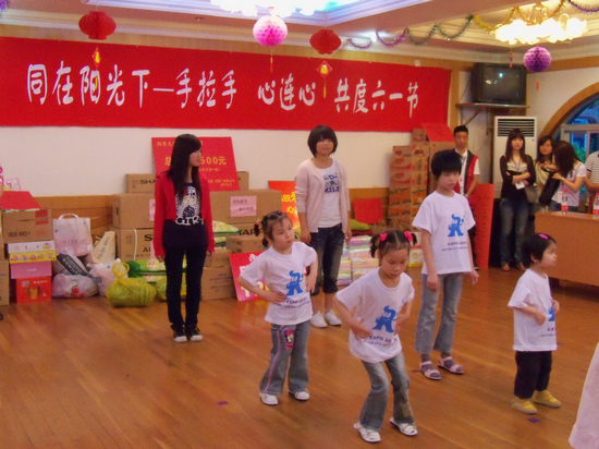 活动中,社员为小朋友们精心准备了节目,精彩的武术表演希望孩子们在以后的生活中能如武者般坚强;和小朋友一起表演《三只熊》希望能够带给他们最直接的快乐。大家还为小朋友们带去了节日礼物——他们爱吃的各种零食。虽然这些东西不是很昂贵,但它真切的代表了文学社每一位社员的爱心与祝福。