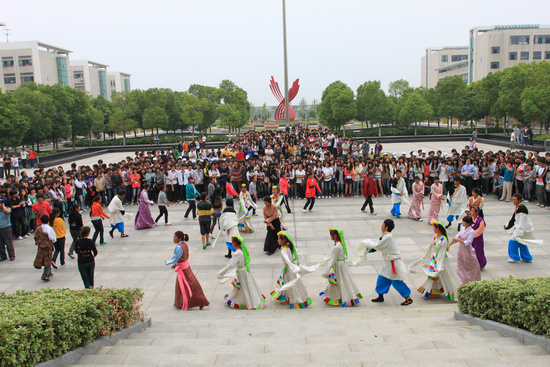 9月28日中午12:00,由校团委、学生会组织的“舞动十月 青春飞扬”迎国庆广场文艺汇演在我校行政综合大楼南面广场上精彩举行。