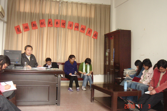 何主任在会上首先传达了教育局党委和学校党委关于开展创先争优活动的会议精神,并结合学校当前发展实际,提出了基础部本次活动的主题:“率先垂范,提升质量,争创中职单招升学典范”,同时对基础部创先争优工作作了动员和总体部署。他指出:基础部党建工作始终要围绕“教育教学”进行开展,在教学实践中深入学习科学发展观,提升教学质量,提高服务意识,办出让群众满意的教育。党支部建设要做到“五个好”,党员要做到“五带头”,全体党员要明确自己的承诺,牢记自己的责任与使命,充分认识开展创先争优活动的重要意义,认真领会其中精神,准确把握活动要求,深入扎实的开展好创先争优活动,不断增强党组织的凝聚力和战斗力,切实发挥好党员教师的先锋模范作用。