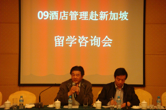 11月12日上午,09酒店管理赴新加坡留学咨询会在国际凯悦大酒店召开,新加坡博伟国际教育学院副校长沈源德先生专程来常,近30位学生家长应邀参加。旅游管理系主任苏再庆主持了咨询会,