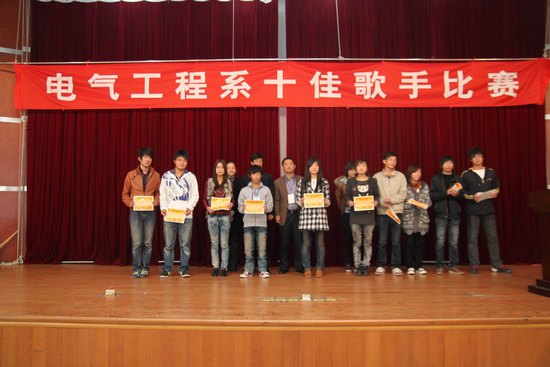经过初赛的选拔,全系共有12位同学入围复赛。比赛一开始,现场立刻成为了音乐的海洋,观众们的掌声此起彼伏,赛场沉浸在一片欢乐的气氛中。选手们各展所长,用自己动听的歌声和不俗的舞台表现,诠释着青春飞扬的主题。最后,来自06高职机电的范琳琳等10位同学获电气工程系“十佳歌手”称号,电气系张主任、王主任,学工处顾利群老师为获奖选手颁发奖状。