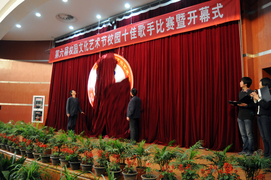 11月22日下午,我校第六届校园文化艺术节开幕式暨十佳歌手比赛在校报告厅隆重举行,本届文化艺术节主题为“强化职业素养,展示职教风采”。校党委副书记、副校长王建刚,党委委员、学工处处长、工会主席李永良为本届艺术节会标揭幕。党委委员、副校长陈飞致开幕词,他对十佳歌手比赛给予了充分的肯定,同时表达了对本次文化艺术节美好的祝愿,希望通过艺术节展现学生职业素养,展示系部独具的专业内涵,营造校园先进的文化氛围。