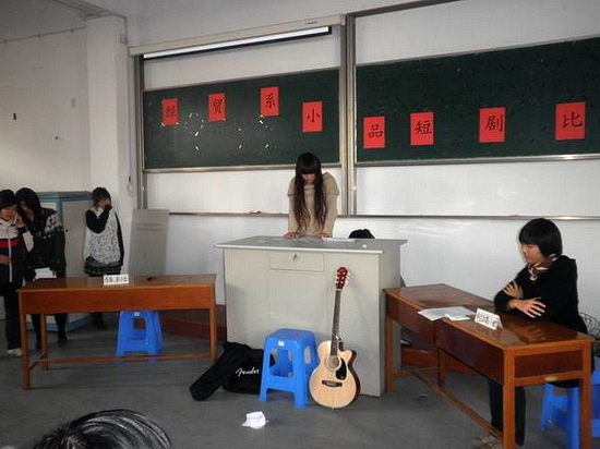 12月8日下午,为活跃学生课余学习生活,经贸系学生科组织全系学生举办小品短剧比赛,共有14个节目参加。经过激烈角逐,08高职财(1)与08高职会计(1)两个班级合作的小品《盗梦空间之偶像》力压群雄,获得一等奖。