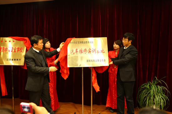 会上,钱向宏副市长和教育局殷东明局长、朱兴元副秘书长和东南开发区姚建祥副主任分别为学校“江苏省常熟中等专业学校”和“汽车维修实训基地”揭牌;王建刚副校长通报了“感动职教十佳企业家” 评选结果。