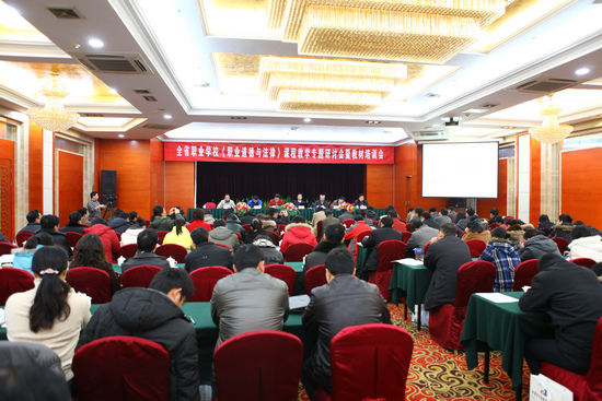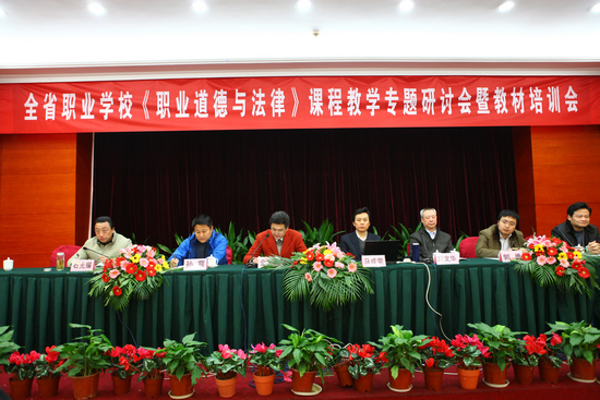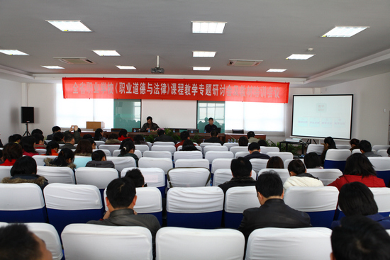 我校作为会议协办单位,金玉书校长在会上致辞,他向与会人员介绍了我校提升学生职业素养的措施和经验。省教育科学研究院职业教育与终身教育研究所所长马成荣作了题为《人本德育》的讲座,他从目标任务、推进策略、实施路径三个角度深入浅出地阐述了德育课程改革的理念和思路。他认为人本德育的目标是促进人的幸福与公正,全省职业学校要在学生的生存技能、生活经验和生命意义三大层面上关注、改革并创新德育内容,要认真贯彻落实全省“五课”教研工作和“两课”评选活动,加强教师的专业化水平,全面提高德育课教学质量和研究水平。