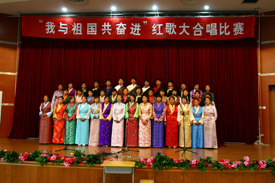 最后,经过评委们的认真评判,旅游系的《翻身农奴把歌唱》获得一等奖;旅游系的《同一个妈妈的女儿》、电气系的《保卫黄河》获得二等奖;传媒系的《今天是你的生日我的祖国》,机电系的《保卫黄河》、《没有共产党就没有新中国》获得三等奖。