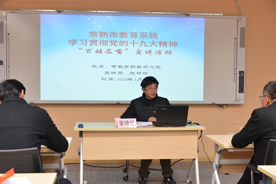 新思想引领新时代,新时代呼唤新作为。今年是深入学习贯彻落实党的十九大精神的开局之年,为更好地学习贯彻党的十九大精神,全面推进2017~2018年度党员冬训工作,3月1日下午,学校党委组织了学习贯彻党的十九大精神“百姓名嘴”宣讲会,邀请市教育系统学习贯彻党的十九大精神“百姓名嘴”宣讲团成员、协作区党建指导员张琦祯同志来校宣讲。学校传媒艺术系党支部、行政党支部、第二党支部全体党员现场听取了宣讲,同时录制了视频,供其他支部活动时收看。