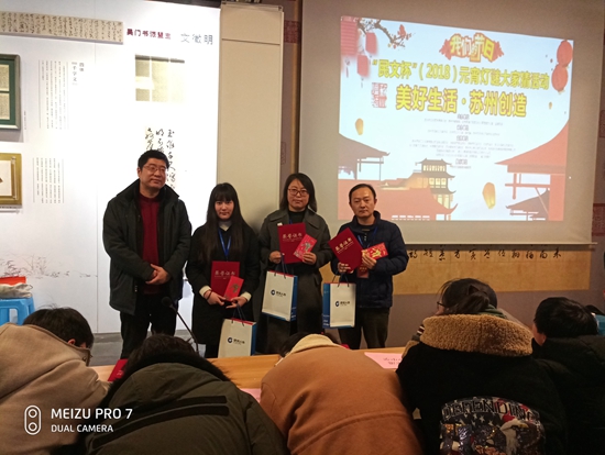 此次活动,扬子晚报、名城苏州、无线苏州等八家媒体同步推送,苏州电视台、苏州日报、姑苏晚报等多家媒体进行了宣传报道。学校春来谜社由张震任教练,陆心珂、苏五文、朱坤三位同学组队参加中学组比赛。学校教师钱惠莲、张雨兰、汤颖婷、吴莉平、王丽亚、王乐谱,毕业生项佳怡、在校生施苇杭、施雨佳参加了“猜谜王”的现场赛,张雨兰与项佳怡分别荣获第六名和第十名。在中学组比赛中,我校代表队,取得第二名的好成绩,捧回亚军奖杯。