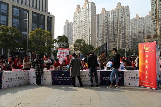 为响应常熟市团市委“青春建功新时代”主题活动,进一步弘扬雷锋精神,增强我校“青年文明号”志愿服务的社会效应。3月11日下午1点30分,在校团委邵志晨书记、校团委委员徐天麒的组织和带领下,来自我校的青年志愿者代表们和学生会干部们,来到常熟星光天地广场,参加了由常熟团市委组织的全市“青年文明号”大型广场集中示范服务活动。校党委马骏书记、吴国清副校长莅临现场,并指导志愿者工作。
