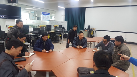 本次考察学习,安排了建设方案的研讨论证工作,现代学徒中心项目建设办公室徐建军主任介绍了我校现代学徒制中心的规划布局及智能制造建设项目的初步方案。浙江机电学院相关专业负责人有针对性地提出了许多宝贵的建设性建议。通过研讨,基本确定了我校现代学徒中心精密机械加工、智能制造产线及工业机器人项目等实验实训区室的建设方向。本次参观学习,进一步加快了我校现代学徒中心的建设进度。
