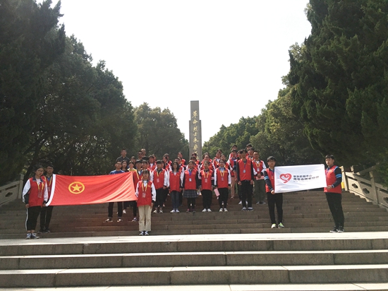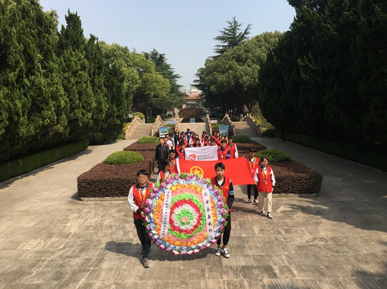 烈士陵园,苍松环绕,翠柏青翠,在共青团团旗的引领下,大家拾级而上,怀着崇敬之情,来到烈士纪念碑前向革命先烈敬献花圈,全体师生默哀1分钟,并绕纪念碑一周,表达对先烈的缅怀之情。校学生会副主席糜佳怡作为学生代表作了发言,表示要牢记历史使命,勇担新时代重任,为实现中华民族的伟大复兴而努力奋斗。