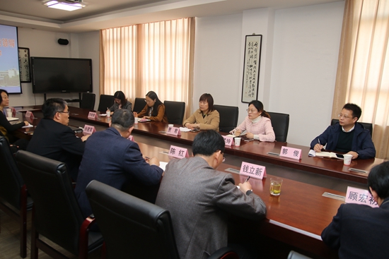3月28日上午,江苏农林职业技术学院副院长贾君等一行五人来校调研。苏建青校长、就业发展处、教学管理处、学生工作处及相关系部领导同贾院长一行进行了交流。