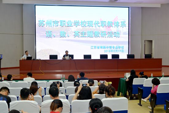 为进一步推进职教发展理念的转变,创新职教发展模式,加快职教体系构建,2018年5月17日,苏州市职业学校现代职教体系语文、数学、英语专题教研活动在我校举办,苏州市职业教育语数外教科研中心组全体成员、20个现代职教体系实践学校140多名语数外骨干教师及各地职教教研员参加了本次专题教研活动,苏州市教科院沈丽萍、范懋炜、周祥及我校领导何世伟亲临现场并主持了相关流程。