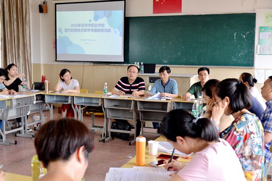 观摩课后,苏州市教科院负责老师分别召集语数外的听课老师们进行了评课活动,与授课教师就教学组织、课程设计等方面进行了深入的探讨交流。研讨会结束后,全体人员还聆听了常熟理工学院钱斌教授所做的“现代职业教育创新实践衔接课程体系构建与实践”的专题讲座。
