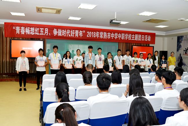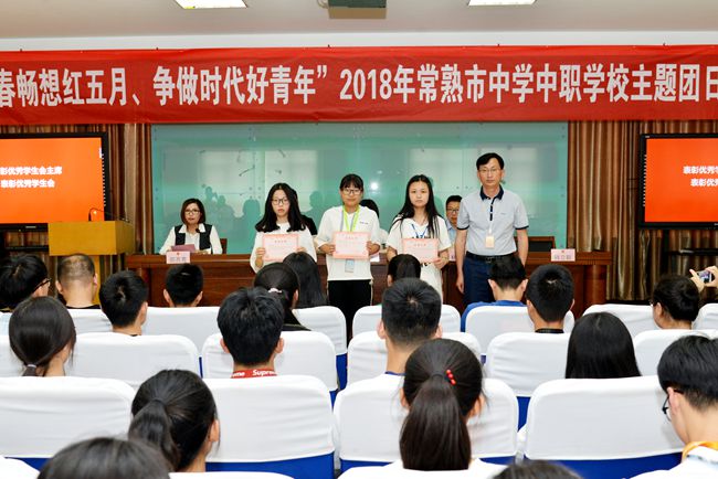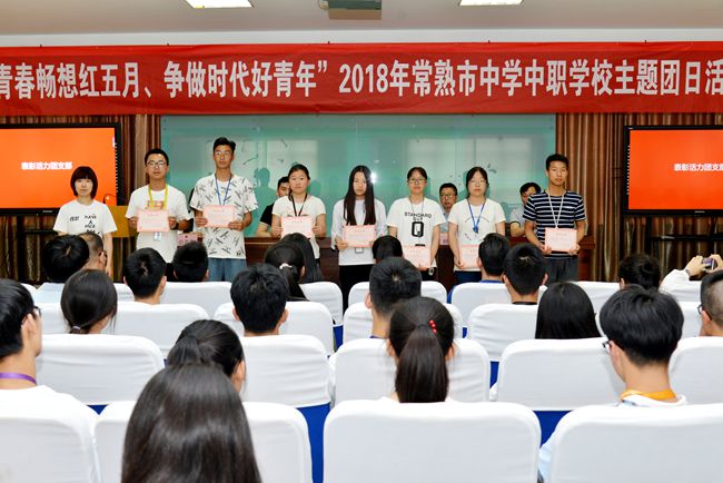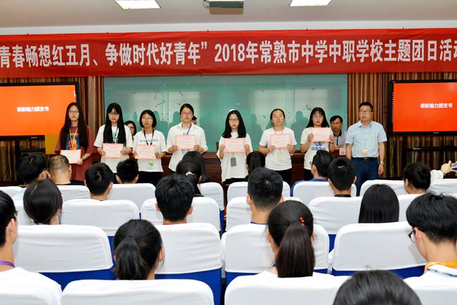 团市委学少部张帆部长作重要讲话,她首先代表常熟团市委,向全校青年及青年工作者致以节日的问候,向受到表彰的集体和个人表示热烈的祝贺,对学校共青团工作取得的成绩给予充分肯定。她说:青年是时代的先锋,要坚持以习近平新时代中国特色社会主义思想为指导,自觉服从党的领导,在思想上、政治上和行动上与党中央保持高度一致;要手上有本领,争做建设“强富美高”新常熟的先行者;要肩上有担当,争做“两个一百年”奋斗目标的践行者。她强调,职教中心校作为全国团学改革示范学校,常熟团学工作的排头兵,要继续开拓创新,结合共青团改革攻坚任务,全力推进全国学校系统共青团创新试点工作,努力做出亮点和特点,不断开创学校共青团工作新局面。