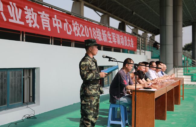 基础部18级单招(2)班的杜俊豪同学代表参训学生做出承诺:一、以军人的身份严格要求自己,服从教官领导和指导员的管理,努力完成规定的军训任务;二、向教官学习,严格遵守各项纪律和作息时间。
