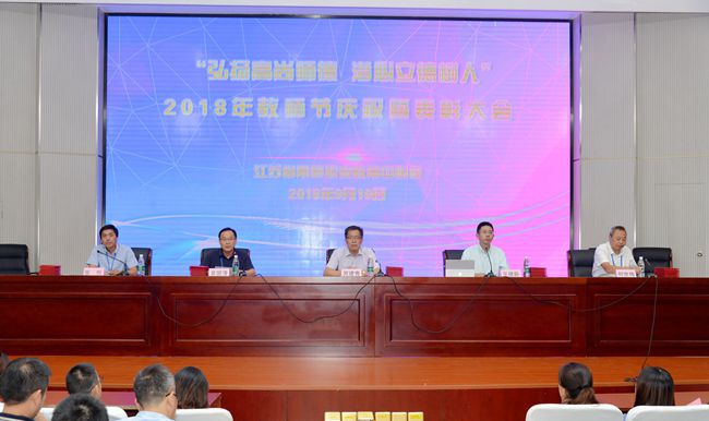 善之本在教,教之本在师。9月10日下午,学校举行了主题为“弘扬高尚师德,潜心立德树人”的教师节表彰大会,表彰在教书育人岗位上勤奋工作、做出突出贡献的优秀教师、优秀教育工作者、十佳班主任、十佳教师。全校教职员工参加了会议,吴国清副校长主持了会议。