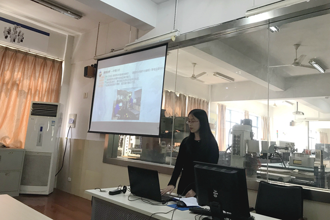 李铭秋老师的授课内容是学徒班数控维修课程中的《数控机床刀架故障诊断与维修》。课上李老师紧紧围绕提升学生核心素养为目标,以现代学徒制项目为依托展开说课,她从“教学分析”、“教学设计”、“教学过程”、“教学反思”等方面对课题内容进行讲解和展示。从创设情境入手,在课程设计采用理实一体化教学,将深奥难懂的理论知识,通过采用小游戏、教学平台、模拟仿真等信息化教学手段,最后再反复操练,将教、学、做融为一体,逐层突破重难点。整节课,李教师的教态亲切,语速适中,课堂设计巧妙,教学理念新颖,激发了听课老师对课堂教学的研究和探索。