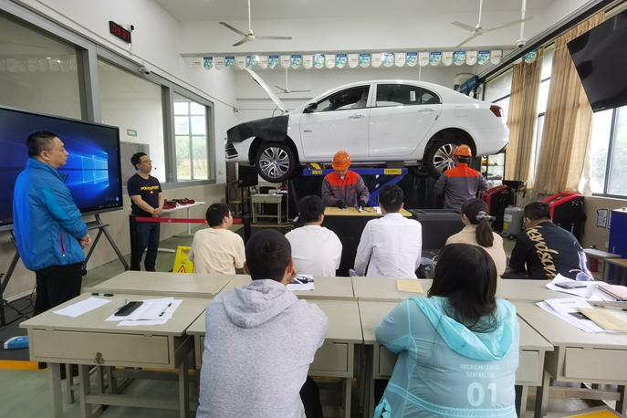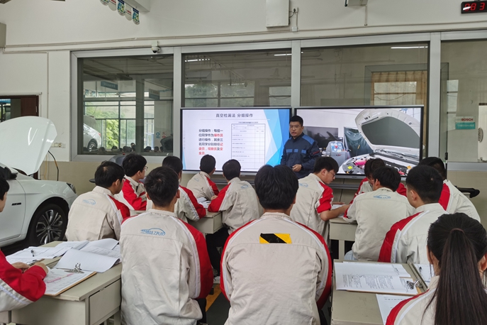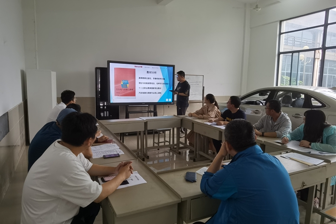 本次教研活动共分三项内容。首先,由韦达老师开设了课题为《空调制冷剂的检漏》的公开课。课堂以任务导向、希沃平台直播展示、教师点评的方式强化学生的技能操作,教学效果良好。接着,全体中心组成员观摩了新能源汽车技术服务省赛赛项的技能展示。在展示过程中,指导教师就赛项技能要点,作了详细的讲解。最后,进行了公开课的说课、评课及研讨。研讨的重点放在开课老师如何说好课以及各位听课老师对本节公开课的建议意见上。其间,围绕交通运输类专业建设,就新能源汽车技术的发展,叶老师还分享了赛项的选拔、训练,备赛以及以赛促教的一些做法。