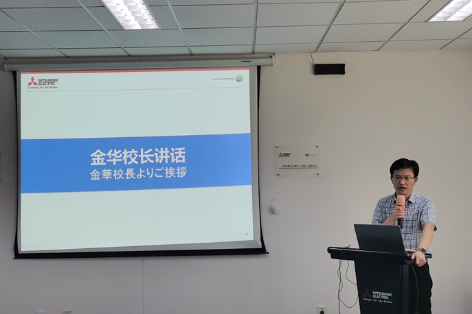 金华副校长进行总结发言。他首先感谢三菱公司多年来对学校工作的支持,希望校企双方能够进一步完善学校和企业合作运行制度,积极推动双方资源、人才、技术、管理、文化全方位融合。学校将以“人才共育、课程共创、基地共建、教学共施、师资共培、评价共履、质量共审”为核心深化现代学徒制校企联合培养,不断为企业输送优秀人次,打造三菱学徒班品牌。最后,要求学徒们要清晰自己的职业目标,锻炼自己,不断学习,敢于担当,发挥团队协作精神,秉承三菱电机“Changes For The Better”的理念,做更好的自己。