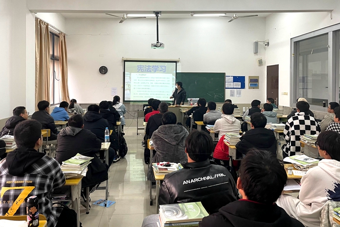 12月,各班班主任利用班会时间,对学生进行宪法知识的宣传和教育活动。在活动中,学生们深入学习宪法基本知识,纷纷表示要增强宪法意识,实践法治精神,养成遵纪守法的好习惯,迈好人生的第一步。