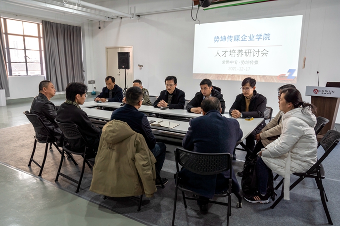为进一步细化企业学院工作举措,提升学院工作实效,提高人才培养质量,近日,传媒艺术系与势坤文化传媒共同举行了势坤传媒企业学院人才培养研讨会。研讨会在势坤文化传媒公司进行,教育局教研室副主任王春,学校副校长金华、就业发展处处长徐巍、企业董事长袁焘、经理丁盛斌、传媒艺术系全体中层干部以及校企双方相关教师参加会议,交流会由传媒艺术系主任王湖主持。