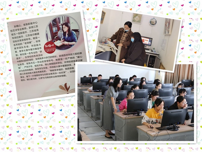 孙梅心老师从教10年来,始终扎根一线,对待工作积极热情,兢兢业业,精心教学,潜心育人。年轻的她,春风化雨;年轻的她,务实求真。一份春华一份秋实,在教育教学的道路上她付出的是汗水,收获的是一份份充实和沉甸甸的成绩。孙老师所带教学团队在省、市技能大赛、教学大赛中屡次摘金夺银,她先后荣获江苏省五一创新能手、江苏省青年岗位能手、江苏省巾帼建功标兵、苏州市技工学校教坛新秀、常熟市五一劳动奖章等荣誉称号。