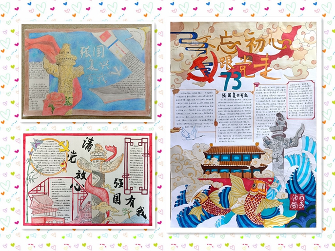 为热烈庆祝中华人民共和国成立 73 周年,喜迎党的二十大胜利召开,根据上级关于组织开展“强国复兴有我”群众性主题宣传教育活动的要求,我校组织开展了“强国复兴有我”主题手抄报比赛征集活动。