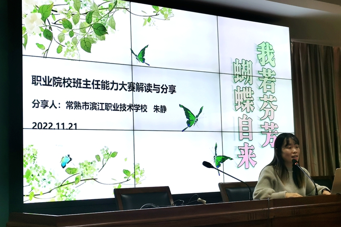 本次培训,由滨江职校的朱静老师主讲。培训就班级建设方案的规划和设计、主题班会及班级活动的策划和实施、管理育人案例的分析和撰写等内容,对全校班主任进行了详细的讲解,并对职业学校技能大赛班主任能力比赛的材料网评、现场比赛等内容,结合她自身的经验和体会,给与会班主任进行了深度的剖析。
