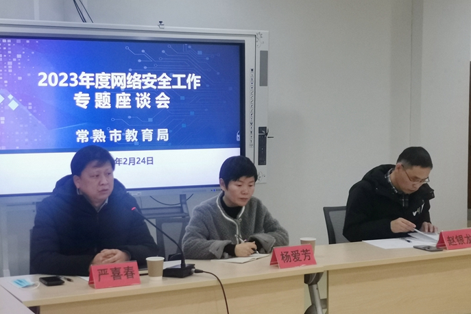 2月24日下午,常熟市教育系统2023年度网络安全工作座谈会在我校召开。市委教育工委委员杨爱芳、市教育装备技术中心主任严喜春,部分学校网络安全分管领导和网络安全管理员参加了座谈会。会议由市教育装备技术中心主任严喜春主持。